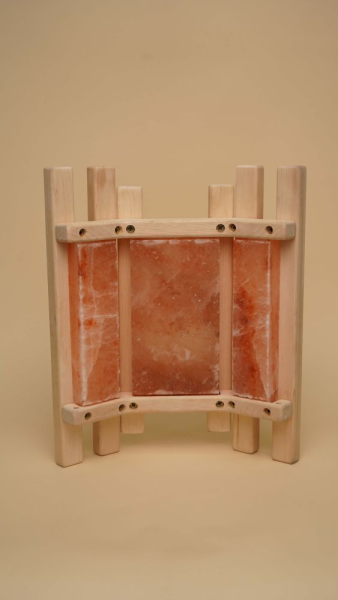 Абажур Trio выполнен из ценных пород кавказской древесины — ольхи. Плитки из гималайской соли установлены на трёх сторонах абажура. Лаконичный дизайн абажура прекрасно вписывается в любой интерьер парильного помещения. Благодаря вставке из гималайской соли насыщает воздух парной полезными микроэлементами, дарит неповторимый уют и настроение