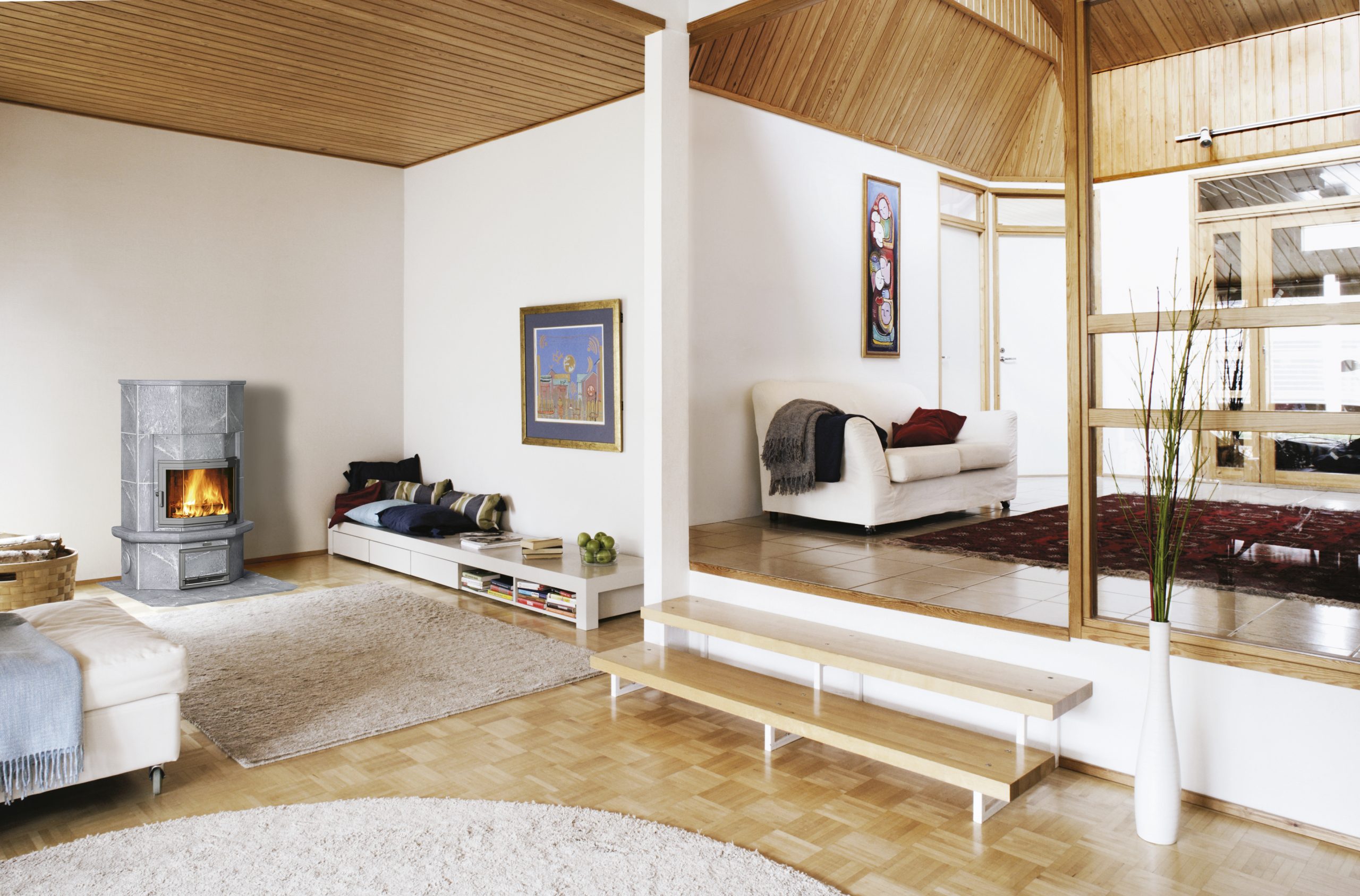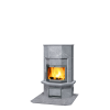 Компактный, традиционный эркерный финский камин — удобный источник тепла и приятной, уютной атмосферы для дач, каминных залов и других небольших помещений. Розетка повторяет линии эркерной топочной дверцы.