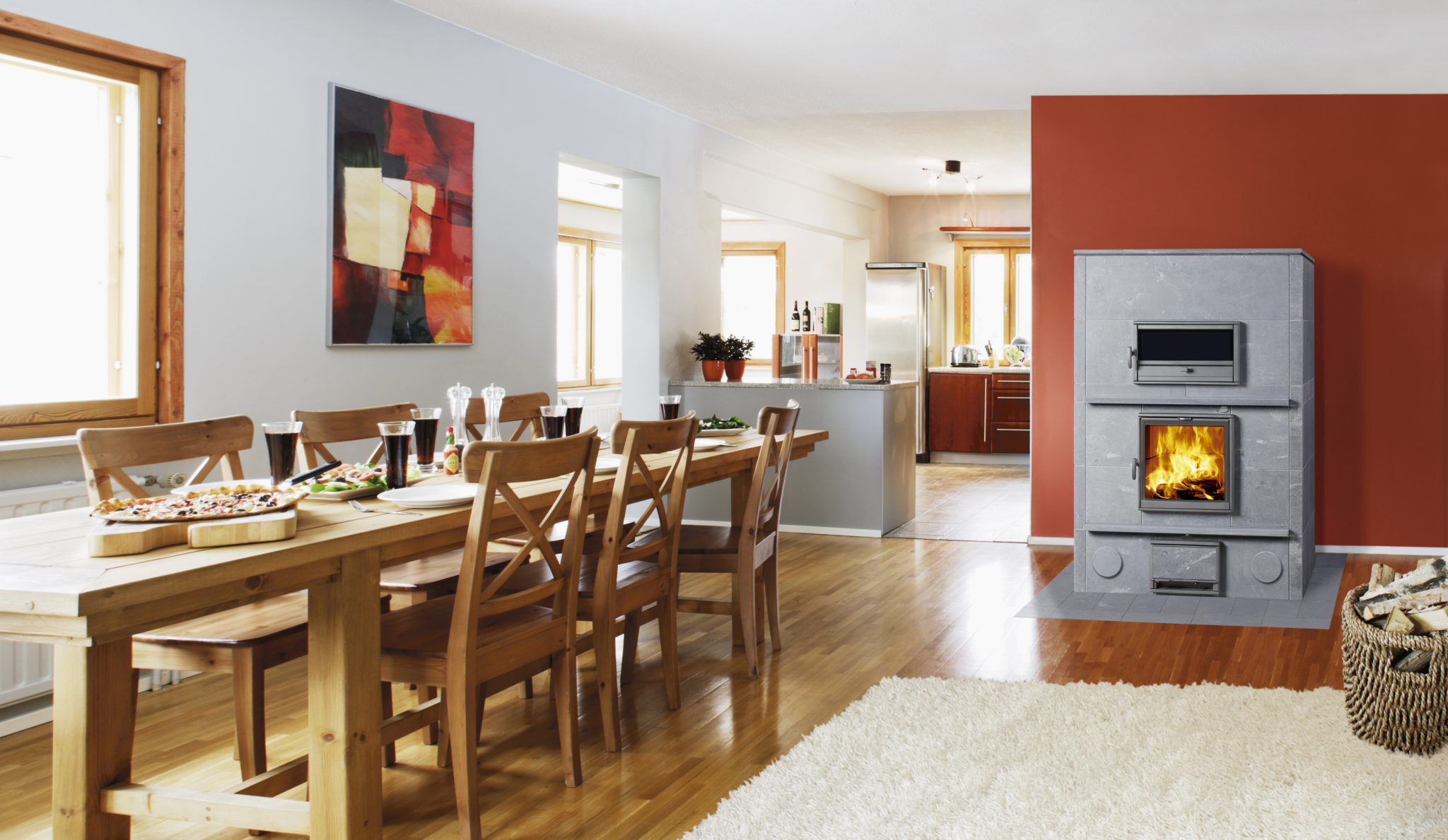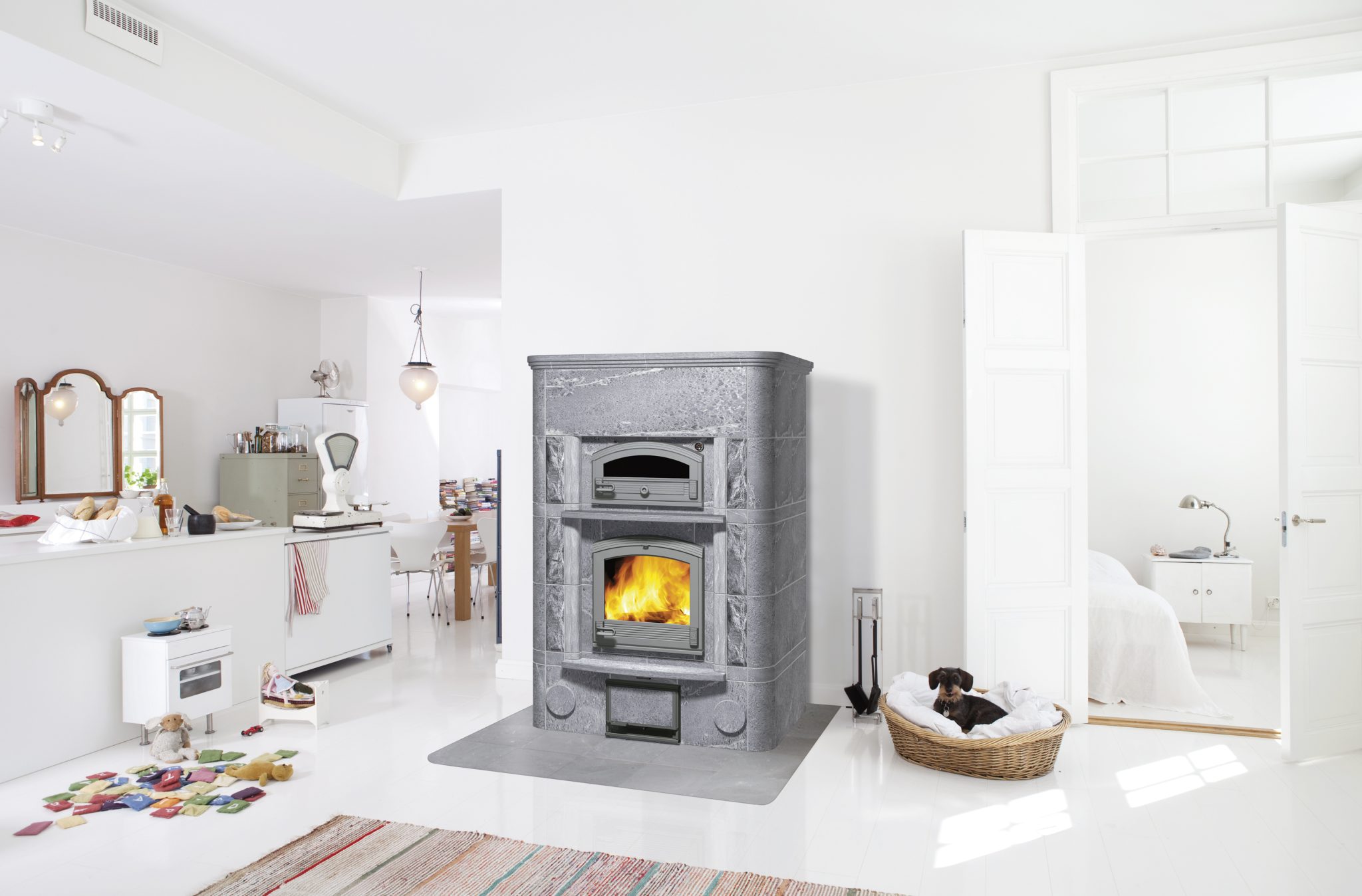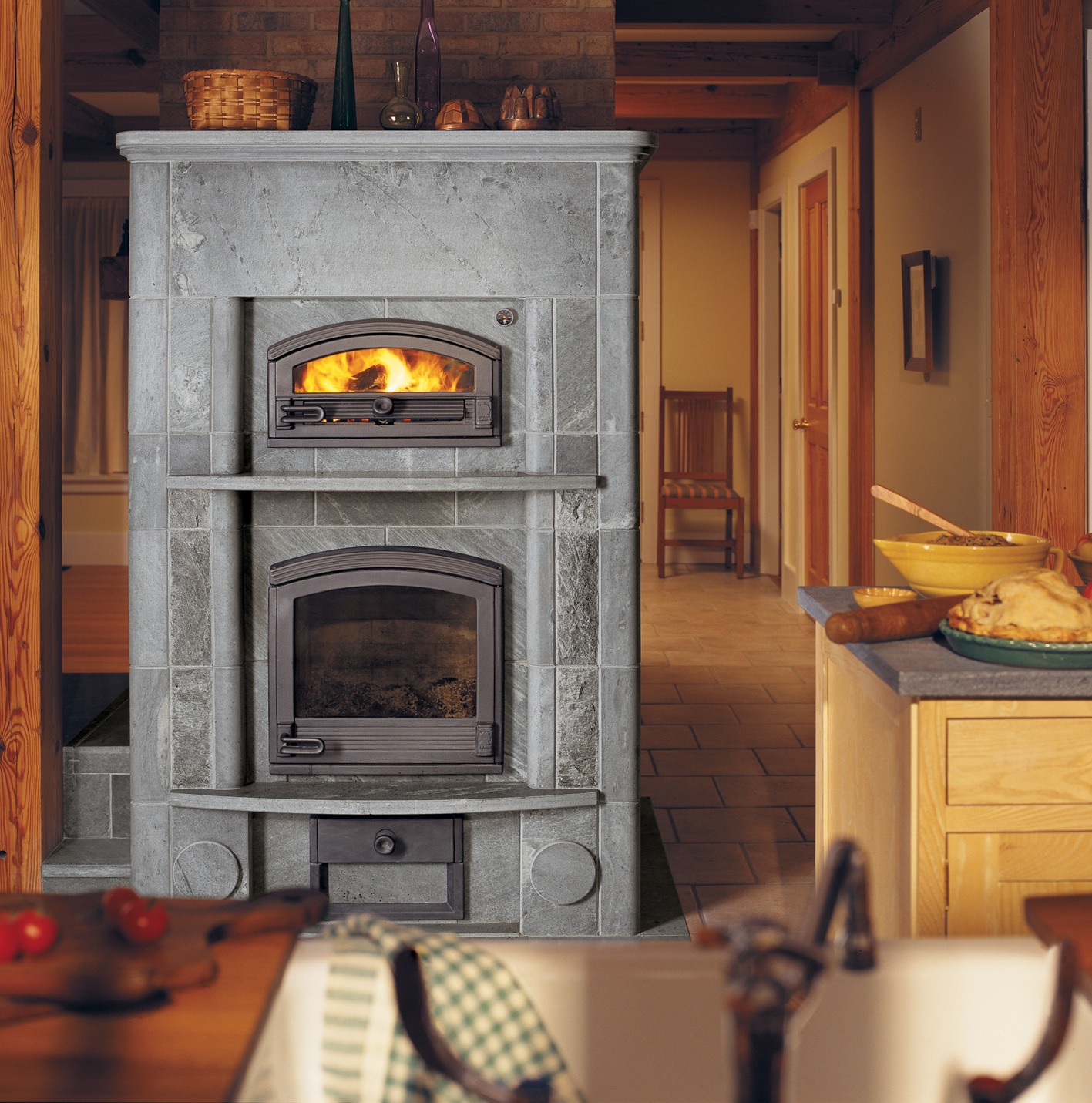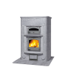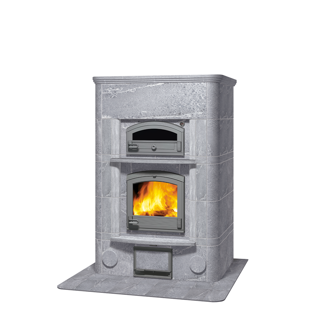 Традиционная печь-камин с полноценным духовым шкафом имеет огромную теплоаккумулирующую способность и отличные свойства выпекания. Грубо обработанный натуральный камень, полочки и закругленная форма дверцы делают печь уютной и домашней.