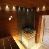 Банная печь в облицовке из талькомагнезита Туликиви создает правильный микроклимат в парной, не обжигает, а прогревает тело, полки, стены мягким ИК излучением.