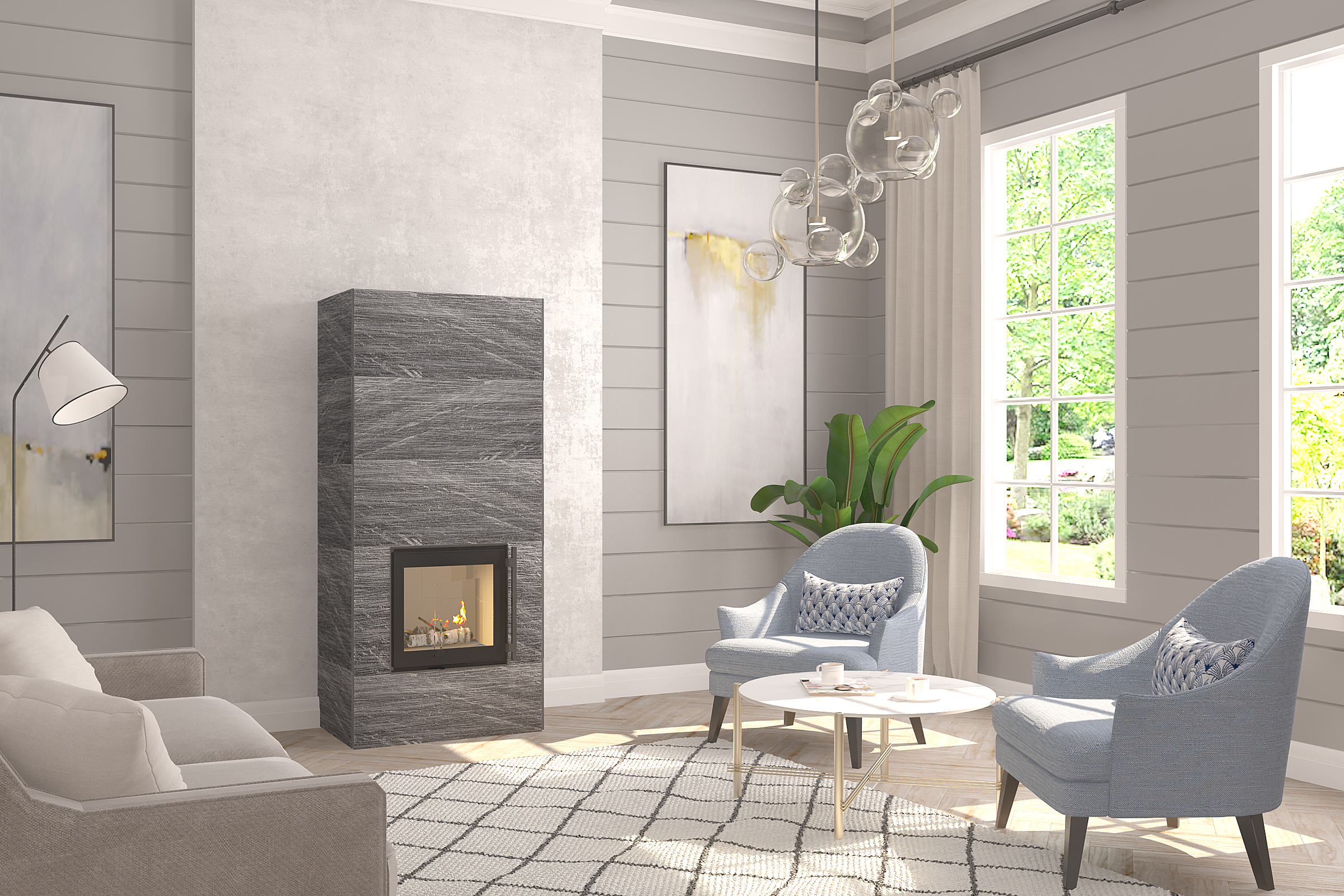 Raita — минималистичный камин из камня Tulikivi с современным и лаконичным дизайном. Модель доступна в варианте с боковыми дымовыми каналами и в узком корпусе (модель S) без них. Большая чугунная дверца с двойным стеклом позволяет снизить тепловое излучение через дверь и в то же время безопасно наслаждаться красотой огня. Тыльная сторона ручки сделана из дерева. Боковые дымовые каналы позволяют полностью прогревать всю печь.