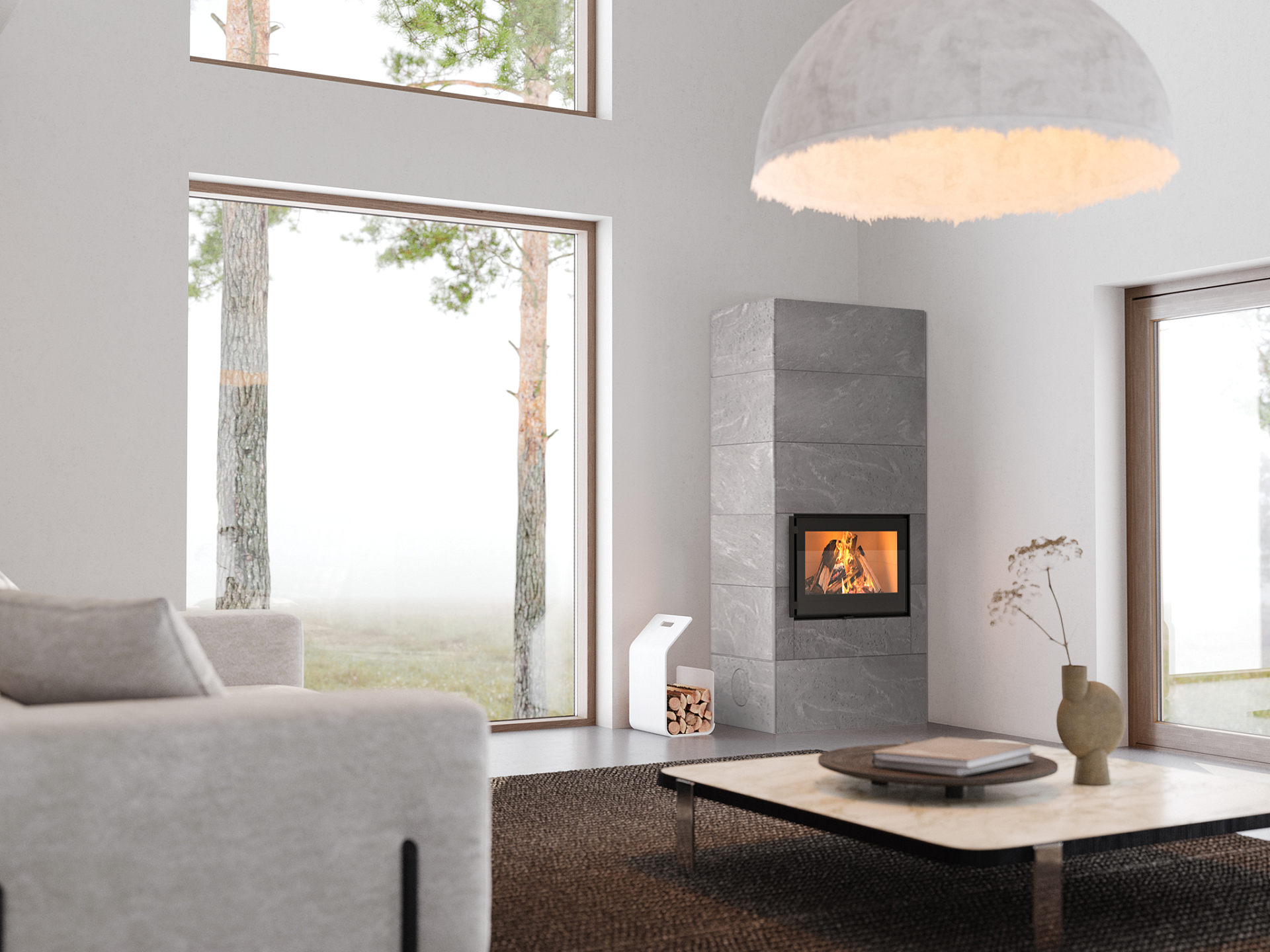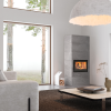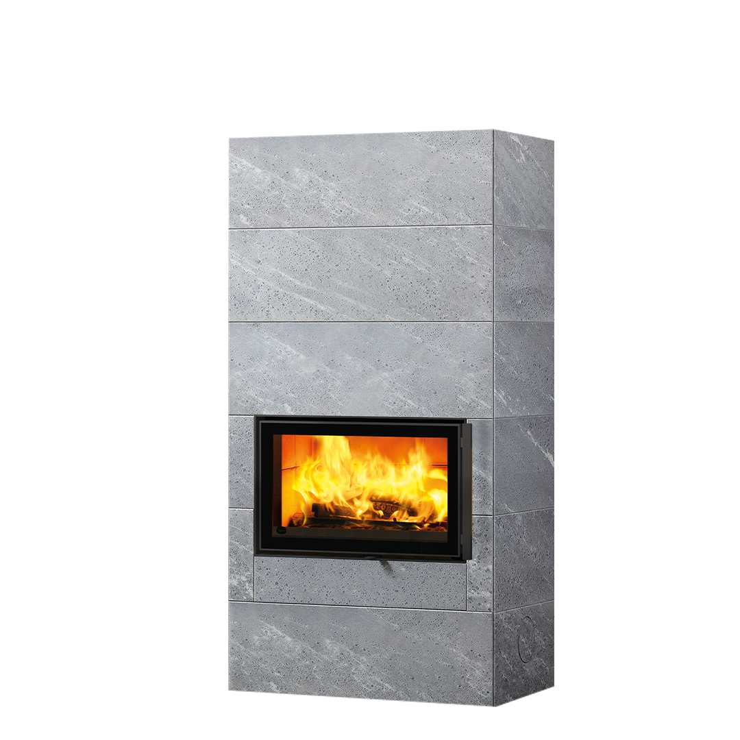 Теперь вы сможете насладиться огнём через панорамную дверцу шириной 75 см. Камин можно топить как дровами (теперь длиной до 50 см), так и пеллетами.