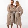 Халат с капюшоном средней плотности из 100% премиум хлопка декорирован логотипом Woodson на планке и поясе. Вафельный халат с рисунком звёздочка дополнен накладными карманами. Модель халата идеальна для отдыха после бани как мужчинам, так и женщинам. Соответствие товара европейским нормам безопасности подтверждено международным сертификатом. Плотность — 240 г/м2.