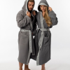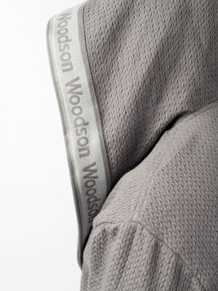 Халат с капюшоном средней плотности из 100% премиум хлопка декорирован логотипом Woodson на планке и поясе. Вафельный халат с рисунком ёлочка дополнен накладными карманами. Модель халата идеальна для отдыха после бани как мужчинам, так и женщинам. Соответствие товара европейским нормам безопасности подтверждено международным сертификатом. Плотность — 240 г/м2.