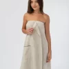 Сшитый из натуральных тканей, килт выполняет функции полотенца или простыни в банных пространствах. Он представляет собой текстильное полотнище в виде трапеции, фиксирующееся на груди при помощи «липучки»: длина килта достаточна для того, чтобы не сковывать движения и чувствовать себя комфортно во время парения или отдыха после бани. Женский килт идельно подчёркивавет силует тела.