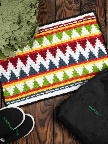 Коврик обеспечивает термозащиту в бане или сауне. Укладывается непосредственно на полок и защищает тело от высоких температур поверхности полка. Вязка достаточно плотная, а орнамент выдержан в цветом решении шапок Woodson. Коврики наилучшим образом поддаются стирке и сушке, не меняют размер после многократного использования. Коврик упакован во влагозащитную и премиальную упаковку.