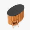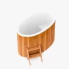 Чаша купели изготавливается из инновационного многослойного композита, с использованием декоративно-защитного высокопрочного материала премиум-класса – гелькоут немецкой компании BUFA. Гелькоут абсолютно безопасен для человека и позволяет добиться глянцевого эффекта. Покрытие купели гладкое, приятное на ощупь, ослепительно белого цвета – вода в такой купели всегда кристально чистая. При желании купель можно превратить в полноценный спа-бассейн, оборудовав ее системами аэромассажа и хромотерапии.