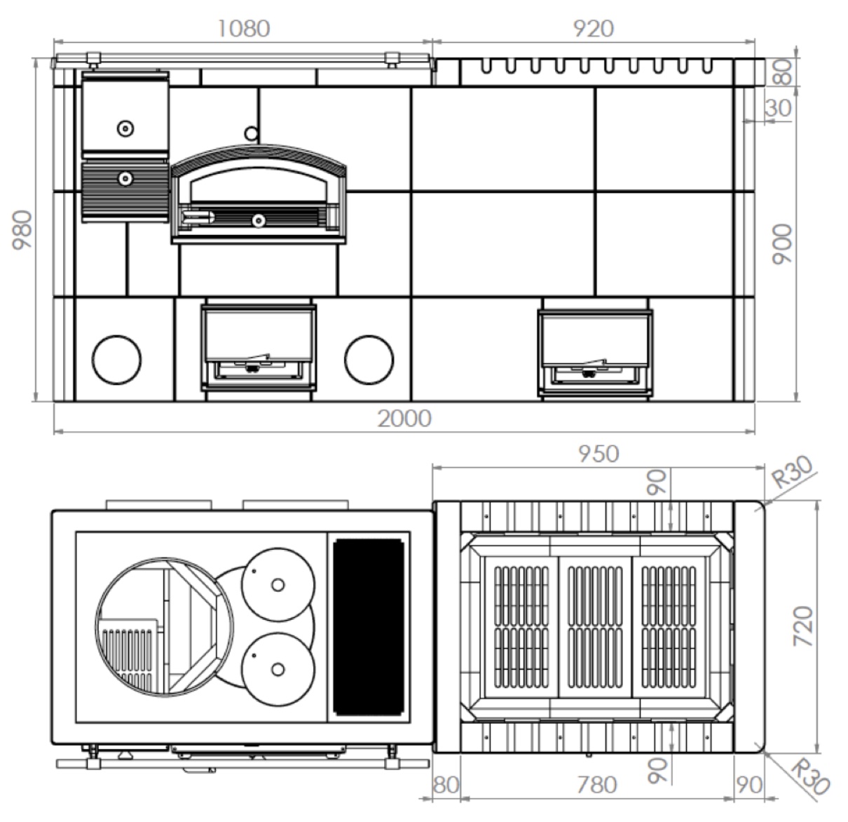 Модернизированный комплекс под казан и мангал идеально подойдет для любителей готовить на природе в большой компании. Комплекс может состоять как из двух, так и из трёх секций.
