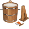 Изделие выполнено из кавказского дуба, чья древесина ценится за долговечность, красоту цвета и текстуры. При изготовлении бондарных изделий WoodSon используются исключительно экологически чистые материалы и не применяют лак и клей. Благодаря этому, дуб отдает воздуху и воде исключительно естественные благотворные для здоровья микроэлементы. Для максимального увеличения срока пользования дубовый жбан устройства имеет вставку из специально металла, не подверженного коррозии.