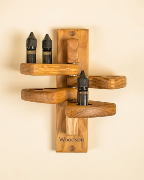 Полочка имеет 4 подставки, что позволяет разместить до 8 флаконов масла