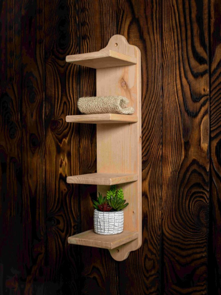 Полка предназначена для хранения аксессуаров: полотенец в скрученном виде, косметики, масел, свечей, щёток и т.п.