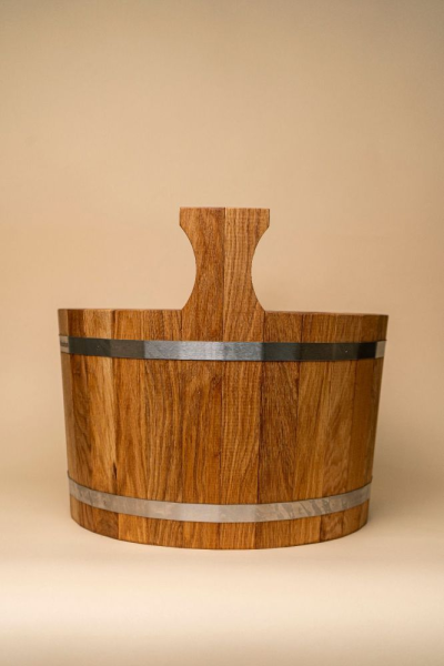 Шайки идеально подходят для запаривания веников, трав и приготовления косметических смесей. Для удобного использования шайки имеют две массивные ручки. Изделия изготовлены из массива кавказского дуба.
