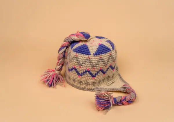 Шапка ручной работы с орнаментом в оттенке: молочный. фиолетовый, розовый, серый. Изделие обеспечит защиту от перегрева головы в бане или сауне. Размеры шапки имеют 30 см в ширину и 19 см в высоту, косички на ушах -18 см, косичка сверху- 25 см. Вязка достаточно плотная, а нежный орнамент обрадует девушек и женщин . Шапки наилучшим образом поддаются стирке и сушке, не меняют размер после многократного использования. Шапка упакована во влагозащитную и премиальную упаковку.