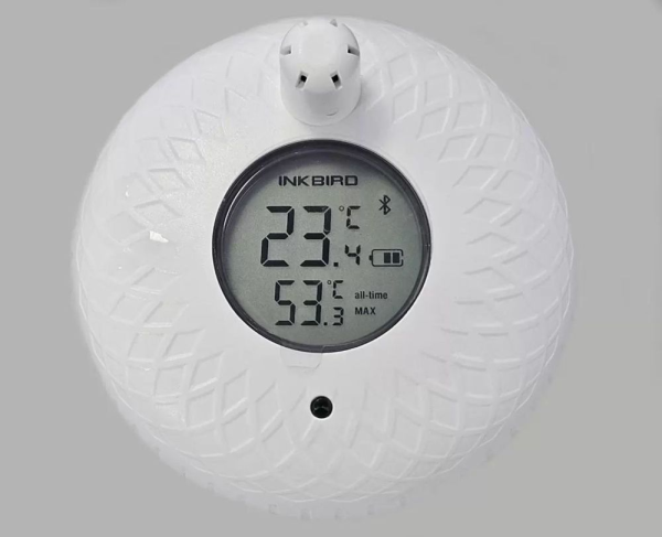Термометр показывает температуру в градусах Цельсия и Фаренгейта. Его можно синхронизировать с приложением и дистанционно контролировать температуру воды в купели. Термометр очень удобен в использовании. Благодаря наличию встроенного поплавка он всегда держится на поверхности.