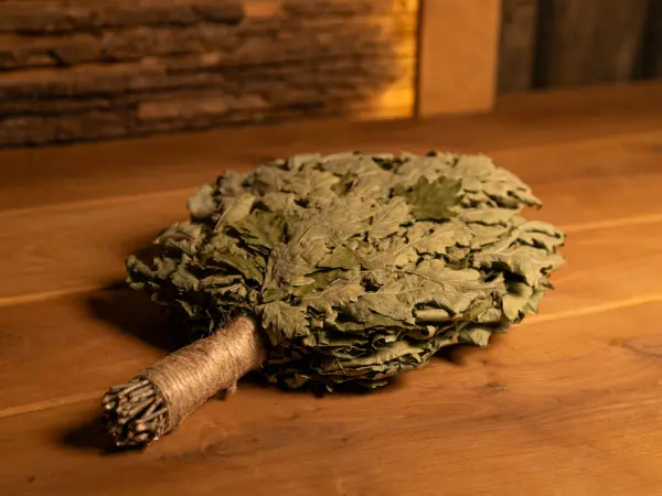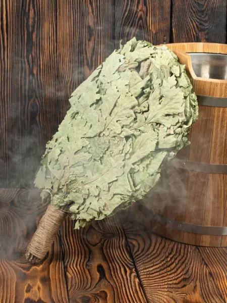 Веник для бани из кавказского дуба изготавливается в сухую и солнечную погоду. Время сбора сырья приходится на середину июня: в этот период концентрация полезных веществ в листьях и веточках достигает максимума. Оптимальный размер веника и массивный хват в плотной обмотке позволяет использовать веник несколько раз. После запаривания в прохладной воде 1-2 часов, листья становятся мягкими и не осыпаются.