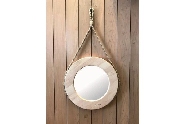 Зеркало в виде срезанного бочонка навеивает морской стиль. Зеркало украсит и внесёт изюминку в любой интерьер.
